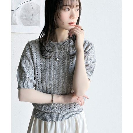透かし編みのデザインが軽やかで涼しげな印象を与え、