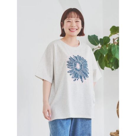 大胆にプリントされたフラワーモチーフが愛らしいアクセントをプラスするTシャツ。