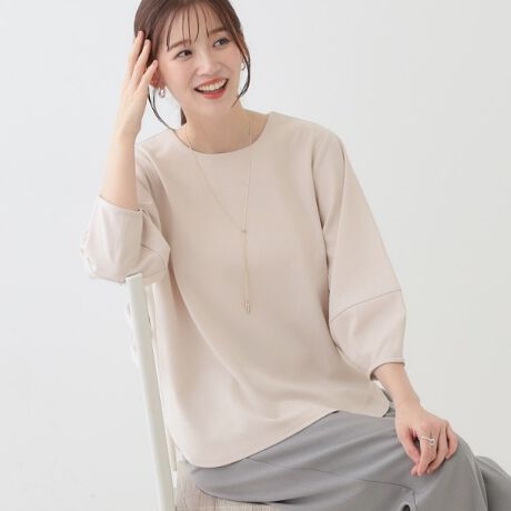 ワイドパンツやナロースカートと合わせ、ボトムにインして着ていただくとすっきりとした印象になりおすすめです。