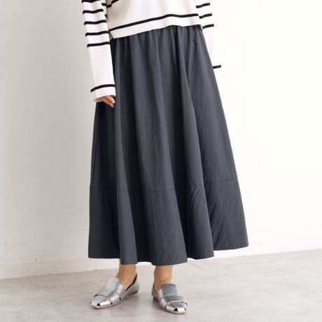 しゃりっとしたドライタッチの素材を使用し、落ち感のあるスカートです。