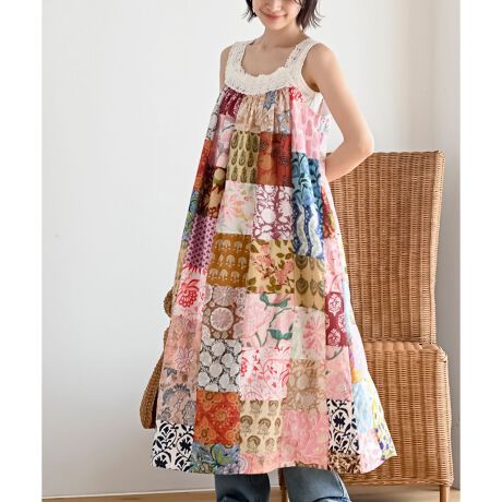 ビビッドな色遣いがコーデを盛り上げてくれるパッチワークワンピース。