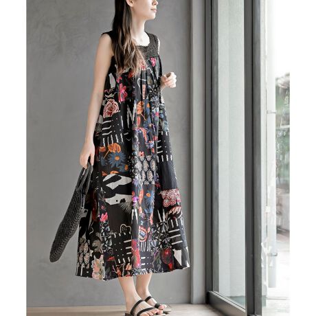 ビビッドな色遣いがコーデを盛り上げてくれるパッチワークワンピース。