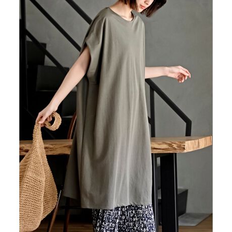 レーヨンナイロンのひんやりとした肌触りとさらっとした生地感がさわやかに着られるワンピース。