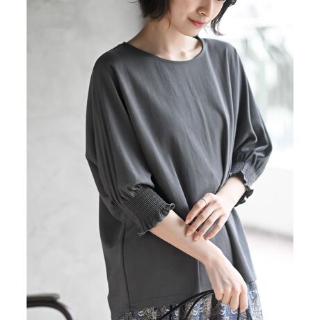 【クールタッチ】手元がカワイイシャーリング袖トップス