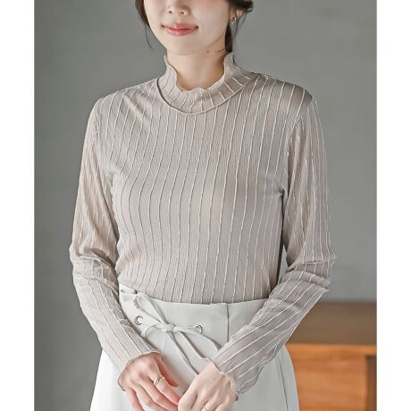 細い線のストライプ柄が入ったさわやかな印象のトップス。