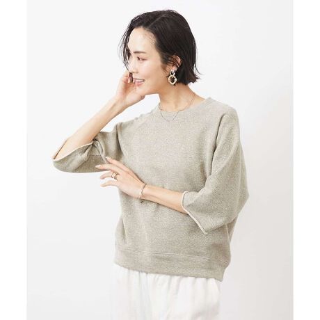 ラメを編み込んだやわらかなスウェット素材で、きれい目なカジュアルスタイルに。