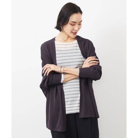 ドルマンスリーブの着流しカーディガン。肩から袖にかけて切り替えが無いため、肩がすっきりと見えるのが特徴です。袖口リブをブラウジングさせて着こなすとこなれた印象に仕上がります。40サイズは限定店舗展開です。