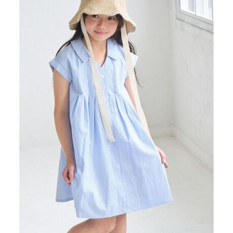 ・シャツディテールと細めのストライプが大人っぽいワンピース。