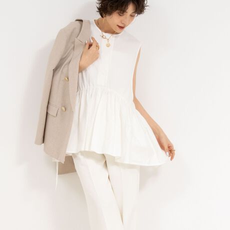 ・1枚で女性らしいお出かけスタイルが決まるスリーブレスブラウス