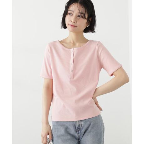 トレンドのヘンリーネックデザインの5分袖カットソーは、襟にリングスナップボタンを使ってアクセントに。コンパクトなサイズ感なので、ジャンスカやスカート、ボリュームのあるパンツにも合わせやすいデザインです。<素材>細リブのキレイめなカットソーを使用しています。<詳細>仕様・前ボタン裏地・なし透け感・ややあり / 光沢・なし / 伸縮性・あり 生地の厚さ・普通※モデルの着用画像の場合、光の当たり具合により、実際の色味と異なって見えることがございます。色味は、商品単体の画像をご参照ください。