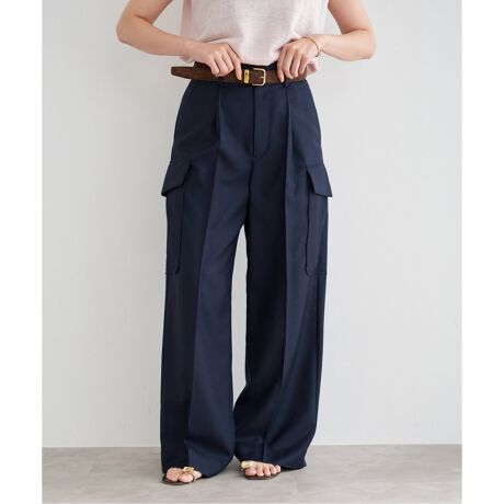 綺麗なスラックスのシルエットをベースに、あえて斜めにしたカーゴポケットで女性らしいバランスに。