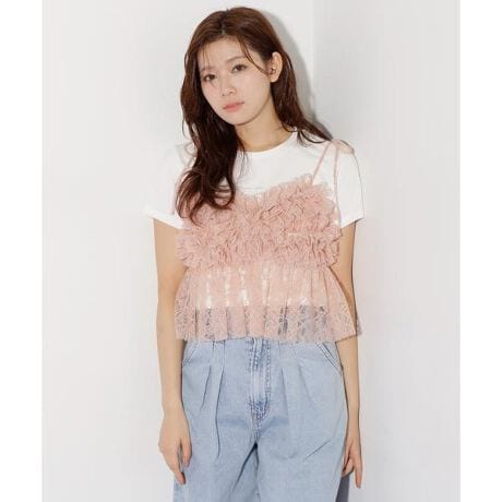繊細なレースフリルがフェミニンな印象を演出し、1枚で華やかなスタイリングが完成するレースキャミソール。肩リボンのデザインが可愛らしさをプラスし、結び方次第でお好みのフィット感に調整できるのもポイントです。Tシャツやブラウスとのレイヤードがおすすめです。デニム合わせでカジュアルからガーリーまで幅広いコーディネートを楽しめます。※撮影時照明の関係により、色味が違って見える場合がございます。またパソコン・スマートフォンなどの環境により、若干製品と画像のカラーが異なる場合もございます。予めご了承ください。商品の色味は、商品単品画像をご参照下さい。※商品画像はサンプルのため、色味やサイズ等の仕様に変更がある場合がございますので、予めご了承ください。