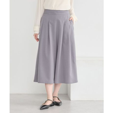 肌触りのさらりとした素材で仕立てたスカーチョ。後ろゴムのウエストで快適な穿き心地ながら、タック入りのフレアなシルエットが足のラインを拾わずすっきり見えるデザインです。身長や着こなしに合わせて着丈が選べるのも嬉しいポイント。様々なテイストにマッチして、オン・オフ問わずに活躍するおすすめのアイテムです。