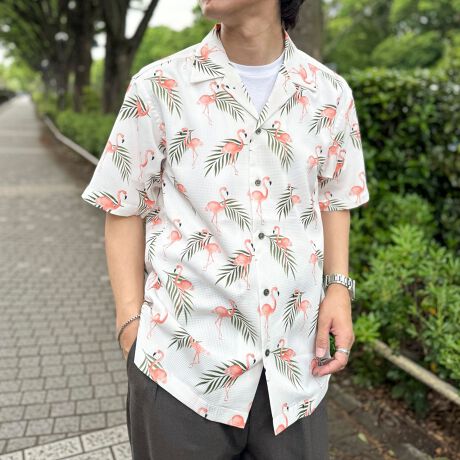 ・リラックス感のある開襟シャツ