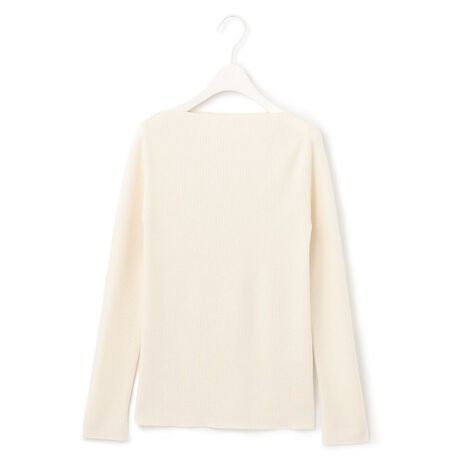 ■デザインシャープなネックラインがすっきりとした印象のボートネックプルオーバーです。デコルテが美しく見える様ネック部分はシンプルに仕上げ、上品で洗練された印象に。ラインを拾いすぎないシルエットや袖口に入ったスリットで華奢見えも叶います。一枚ではもちろん、ジャケットやアウターのインナーとしても重宝する着回し力抜群のアイテムです。※ICBロゴプレートは後衿部分に付きます。