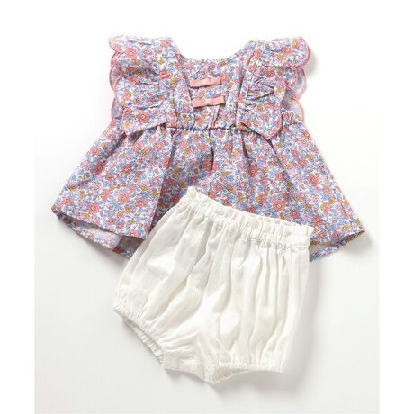 apres les cours(アプレレクール)の「花柄スカラップセットアップ」は、やさしいニュアンスのナチュラルなデザイン。ベビーギフトや出産祝いの主役にも♪