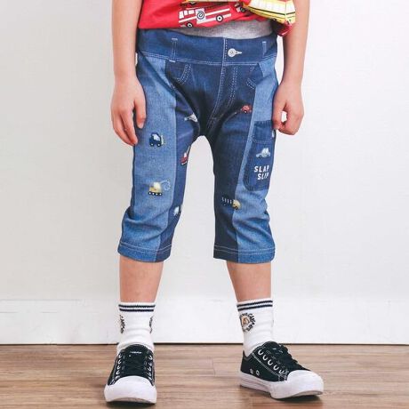 クルマくまイチゴデニム風プリント5.5分丈パンツ(80~120cm)