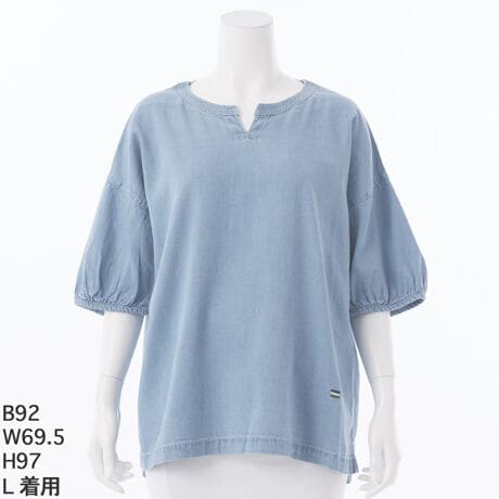 テンセルコットンデニムプルオーバーブラウス【グリーンノート】【大きいサイズ】【L・LL】