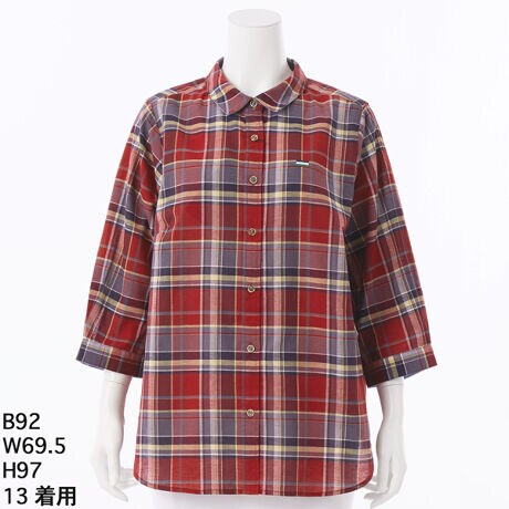 マルイウェブチャネル   /   トップス   /   シャツ   /   マドラスチェック七分袖シャツ【グリーンノート】【大きいサイズ】【13号・15号・19号】