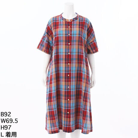 マドラスチェックワンピース【グリーンノート】【大きいサイズ】【L・LL】