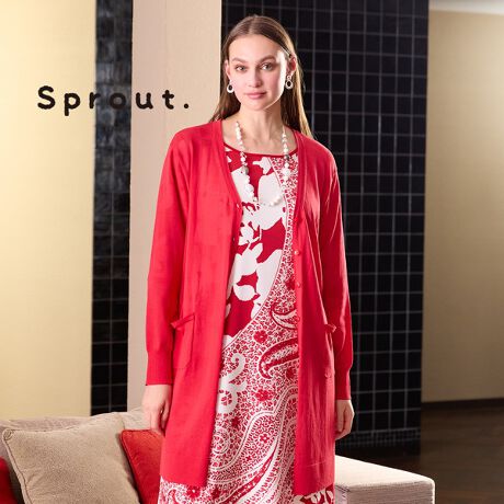 【Sprout.】綿ナイロン Vネックニットカーディガン