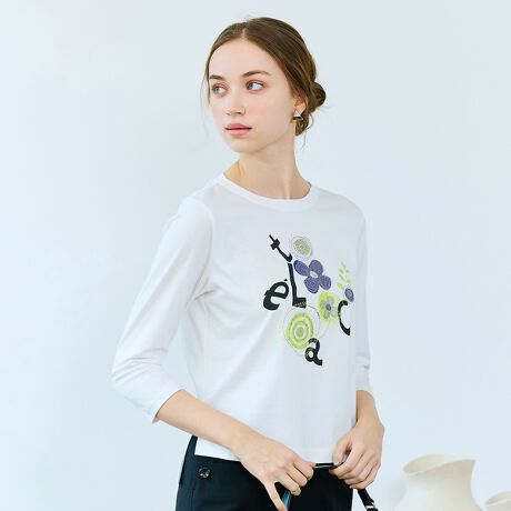 前身頃にエクラのロゴをポップなアレンジでプリント。夏の楽しい雰囲気にぴったり。