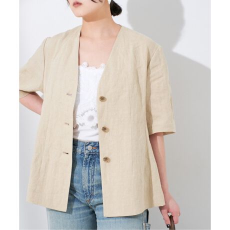 涼し気なリネン素材の半袖ジャケット。