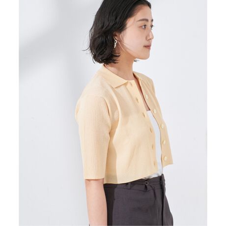 クロップド丈で衿付きカーディガンはクラッシックながらトレンド感あって◎