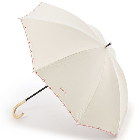 遮熱性に優れた1級遮光生地『東レ サマーシールド』を使用した晴雨兼用傘。綿混素材のナチュラルな風合いに、裾に並んだバイカラーハートの刺しゅうが遊び心をプラス。カジュアルとキュートが絶妙に調和したデザインが魅力です。
