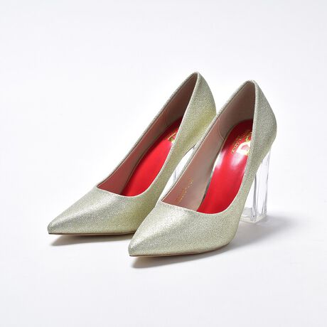 トレンドのクリアヒールを使用したハイヒールパンプス。