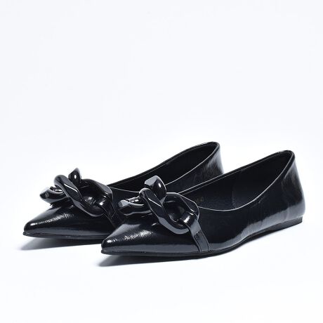 ポインテッドトゥ チャンキーチェーン フラットパンプス