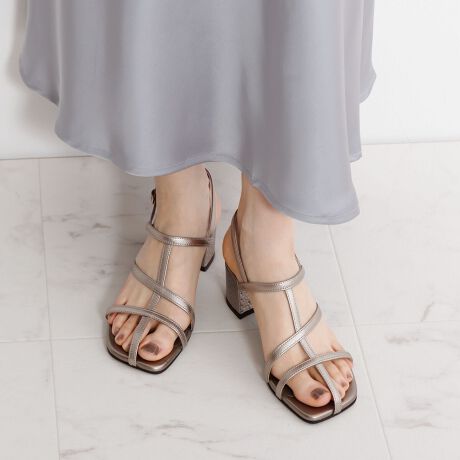 ストラップのホールド感と安定感のあるブロックヒールで歩きやすさもばっちり。柔らかなレザーを使用しているので細いストラップでも足当たりの良い履き心地が魅力です。 ヒール部分には贅沢にオリジナルの「イントレチャート」型押しレザーを使用。ヌーディな見た目は、マニッシュなパンツスタイルにも女性らしいスカートスタイルにもハマる一足です。