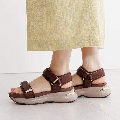 HIMIKOオリジナルのメタルパーツとスムース素材で、大人が履ける上品なスポーツサンダルに仕上げました。面ファスナータイプのストラップが足にぴったりとフィットし、クッション性に優れた安定感のある履き心地。カジュアルスタイルにはもちろん、きれいめスタイルの外しアイテムとしても活躍します。