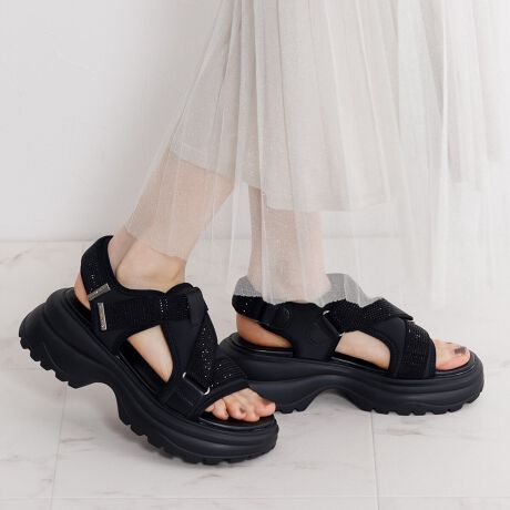 スポーティーでありながら、きらきらと輝くラインストーンを贅沢にあしらったスポーツサンダルが新登場!