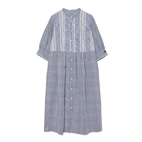 2種類のチェック生地をミックスしてバンドカラーワンピースを作りました。
