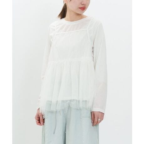 ゆったりウエストのチュールキャミソールは脱ぎ着も楽々で着まわし力抜群のアイテムです。
