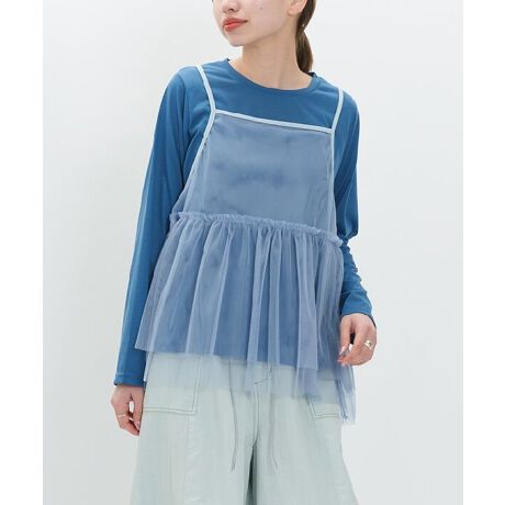 ゆったりウエストのチュールキャミソールは脱ぎ着も楽々で着まわし力抜群のアイテムです。