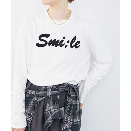 ”Smile”というロゴを筆記体にしてSAGARA刺繍で作ることでより柔らかい文字の雰囲気を出しております。