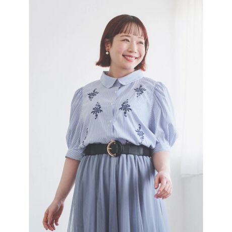 レトロな雰囲気のフラワー刺繍がアクセントに映えるシャツ。