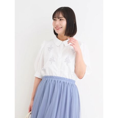 フラワー刺繍シャツ(無地/ストライプ)