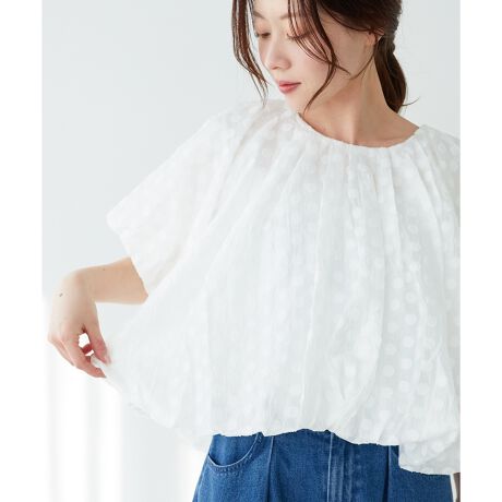 オーガンジー水玉ジャガード生地を使用しバルーンブラウスを作りました。