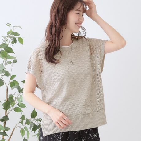 【S-LL2点セット】大人ナチュラルな メッシュ編みニット+タンクトップ