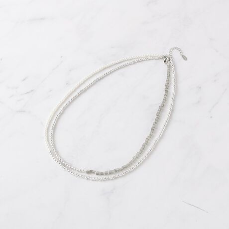 可憐なフェイクパールとシルバービーズがMIXされたレイヤードネックレス。