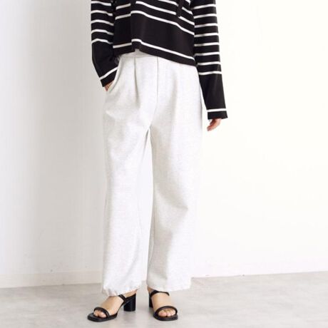 きれいな表面感のポンチを使用したスウェットパンツは、ベーシックカラーのオートミールと杢グレーの2色展開です。
