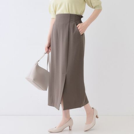 前スリットデザインは動きやすいだけでなく、足元をすっきりと見せてくれる効果も。