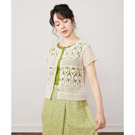 コード刺繍半袖カーディガン