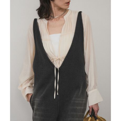 リボンをほどいて羽織りとしてカーディガン代わりのスタイリングも◎