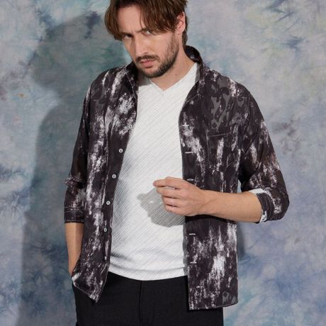 軽く、清涼感のある素材にオリジナルのムラプリントを施して艶っぽさを演出しました。