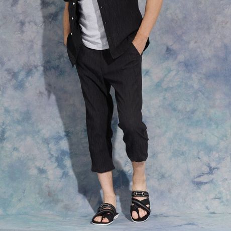 腰回りから太ももは程良い太さで、裾口にかけて細くしたシルエットのノータックパンツになります。