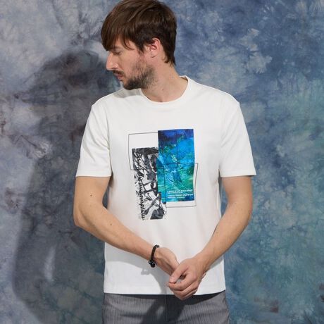 油絵風グラフィックを大胆にプリントしたアラカルトクルーネックTシャツです。
